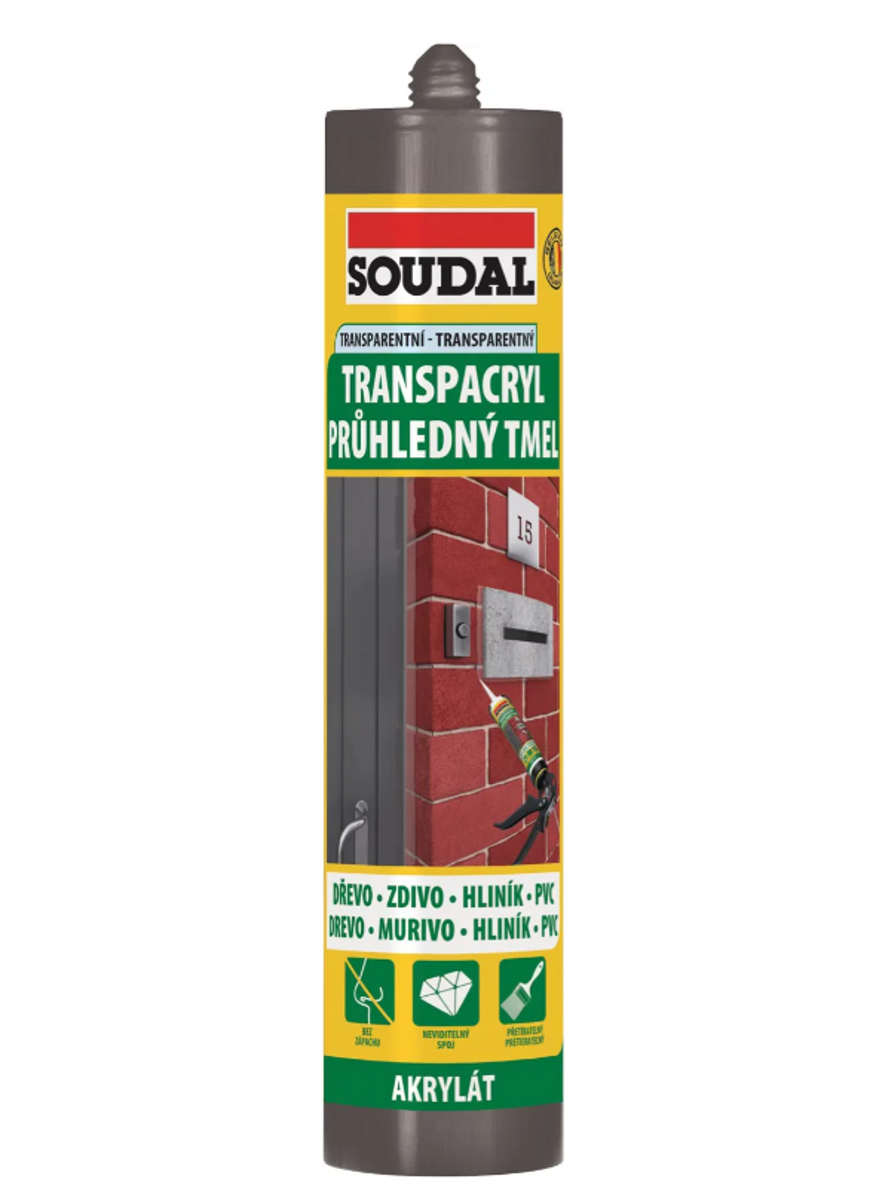 Transparentní pružně plastický tmel na bázi akrylátu, vhodný pro utěsnění a estetickou úpravu drobných stavebních spár. Velmi snadno se nanáší i uhlazuje, po úplném vytvrzení zprůhlední, obzvláště vhodný pro koutové spáry. Přetíratelný běžnými barvami i lazurovacími laky. Vhodný pro sanitární aplikace, obsahuje protiplísňové fungicidy.
